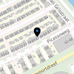Picassoweg is een straat in de buurt 'Tussen de Vaarten Z.- Midden west' van de wijk 'Tussen de Vaarten Zuid' in Almere. In deze buurt wonen 1.680 mensen. De directe omgeving is sterk stedelijk en heel erg groen. Er liggen veel voorzieningen in de buurt. De leefbaarheid in Tussen de Vaarten Z.- Midden west wordt beoordeeld als ruim voldoende.