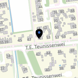 T.E. Teunissenwei is een straat in de buurt 'Damwâld' van de wijk 'Centrum' in Damwâld. In deze buurt wonen 5.605 mensen. De directe omgeving is weinig stedelijk en redelijk groen. Er liggen redelijk wat voorzieningen in de buurt. De leefbaarheid in Damwâld wordt beoordeeld als goed.