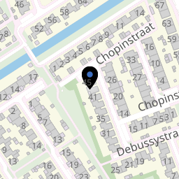 Debussystraat 43 is een vrijstaande woning in Hellevoetsluis. Hij heeft een gebruiksoppervlakte van 139 m² en is gebouwd in 1988. Door het energielabel B is dit een redelijk zuinige woning.