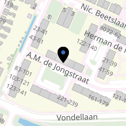 A.M. de Jongstraat is een straat in de buurt 'Oost' van de wijk 'Oost' in Ridderkerk. In deze buurt wonen 6.150 mensen. De directe omgeving is sterk stedelijk en vrij groen. Er liggen veel voorzieningen in de buurt. De leefbaarheid in Oost wordt beoordeeld als ruim voldoende.