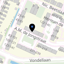 A.M. de Jongstraat is een straat in de buurt 'Oost' van de wijk 'Oost' in Ridderkerk. In deze buurt wonen 6.150 mensen. De directe omgeving is sterk stedelijk en vrij groen. Er liggen veel voorzieningen in de buurt. De leefbaarheid in Oost wordt beoordeeld als ruim voldoende.