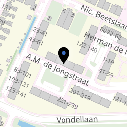 A.M. de Jongstraat is een straat in de buurt 'Oost' van de wijk 'Oost' in Ridderkerk. In deze buurt wonen 6.150 mensen. De directe omgeving is sterk stedelijk en vrij groen. Er liggen veel voorzieningen in de buurt. De leefbaarheid in Oost wordt beoordeeld als ruim voldoende.