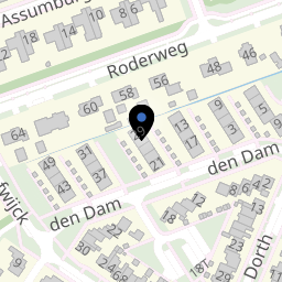 den Dam is een straat in de buurt 'Roden West' van de wijk 'Wijk 00 Roden' in Roden. In deze buurt wonen 6.970 mensen. De directe omgeving is matig stedelijk en vrij groen. Er liggen redelijk wat voorzieningen in de buurt. De leefbaarheid in Roden West wordt beoordeeld als zeer goed.