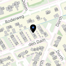 den Dam is een straat in de buurt 'Roden West' van de wijk 'Wijk 00 Roden' in Roden. In deze buurt wonen 6.970 mensen. De directe omgeving is matig stedelijk en vrij groen. Er liggen redelijk wat voorzieningen in de buurt. De leefbaarheid in Roden West wordt beoordeeld als zeer goed.